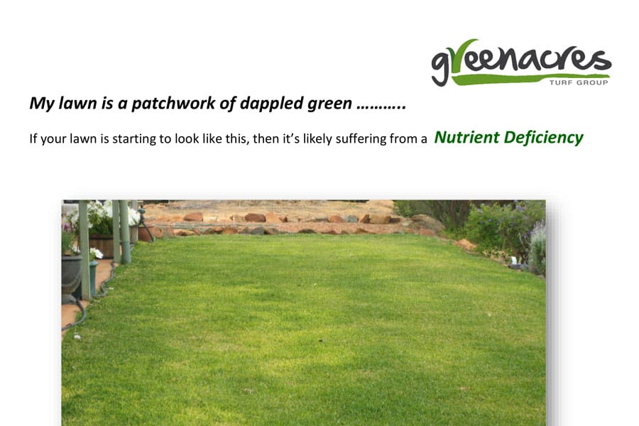 My lawn is a patchwork of dappled green…. If your lawn is starting to look like this, then it’s likely suffering from a Nutrient Deficiency.